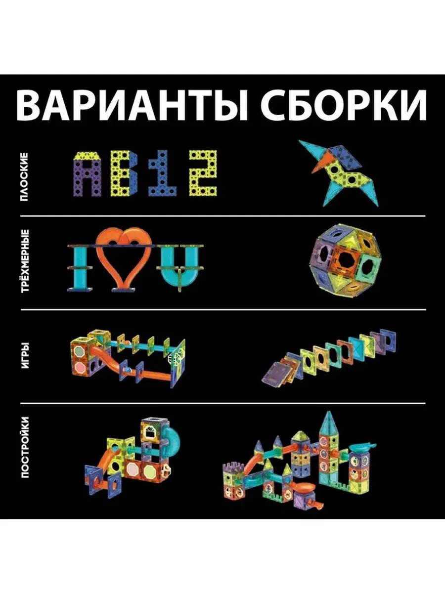 Магнитный конструктор — это набор, детали которого соединяются как по волшебству. Под действием магнитного поля элементы притягиваются друг к другу, открывая неограниченный простор для экспериментов.