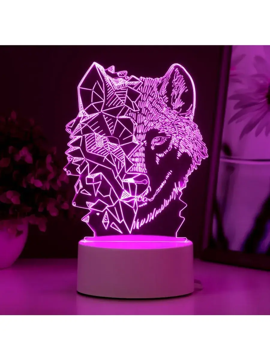 Светильник 3D ночник RISALUX «Волк», LED RGB, от сети, 13.5×